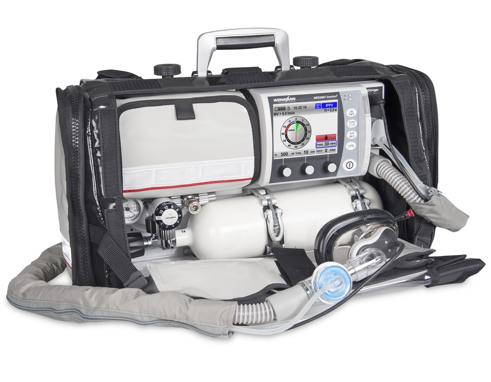 Neben Artikeln der Firma Weinmann für Defibrillation und Beatmung erhalten