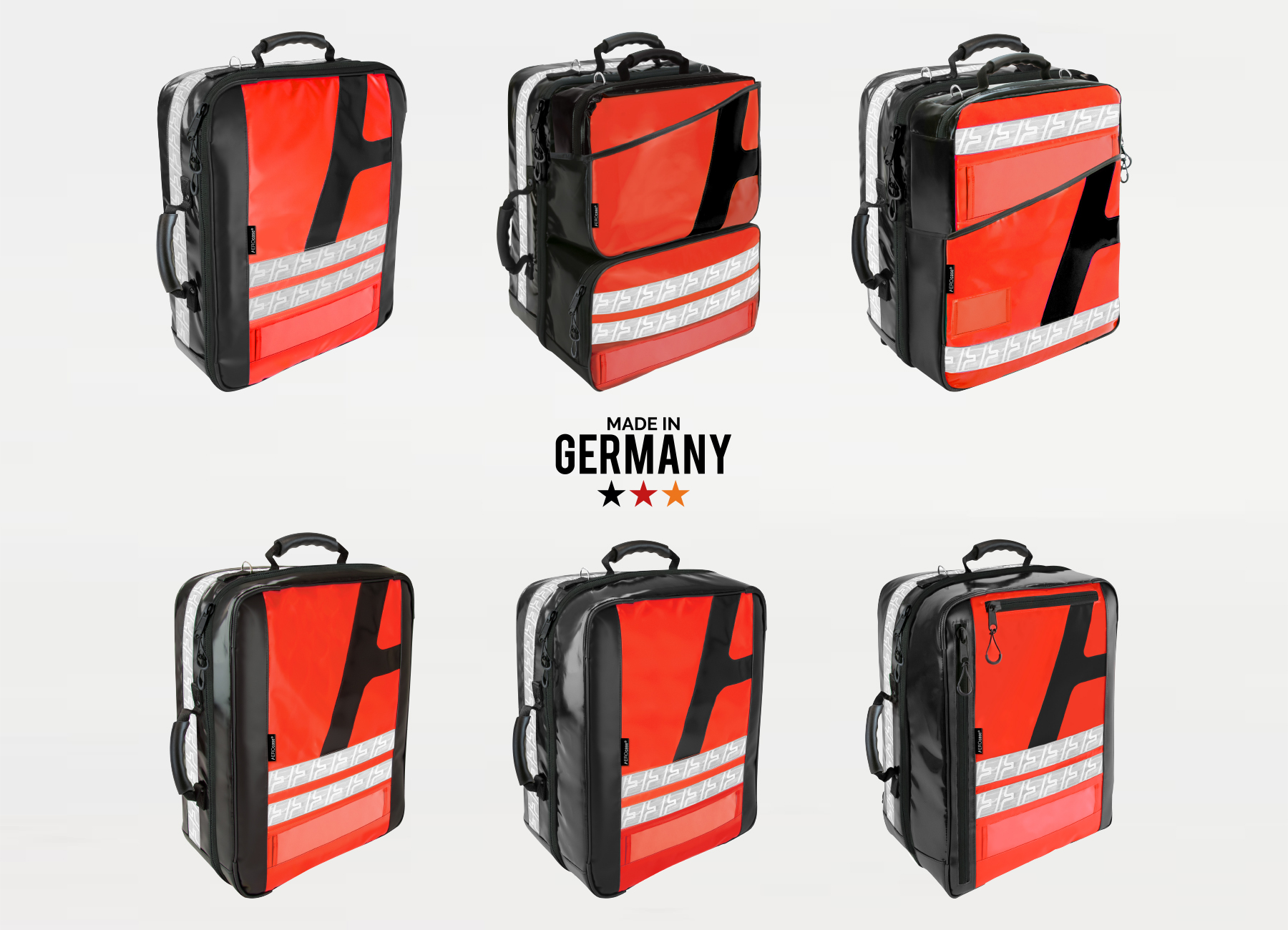 Notfallrucksäcke „Made in Germany“ für die professionelle Notfallrettung, mit magnetischem farblich abgesetzten Raster-Modulsystem zur individuellen Modultaschen-Bestückung. Die Serie EMS+ vereint das überragende Hygienekonzept des dank Ultraschallschweißtechnik nahtlosen Innenraums mit der schnellen und sauberen Magnetfixierung der Modultaschen.Durch die angewandte Ultraschallschweißtechnik kann gänzlich auf Schmutzfänger wie z.B. Klettstreifen verzichtet und das Verkeimungsrisiko so erheblich verringert werden